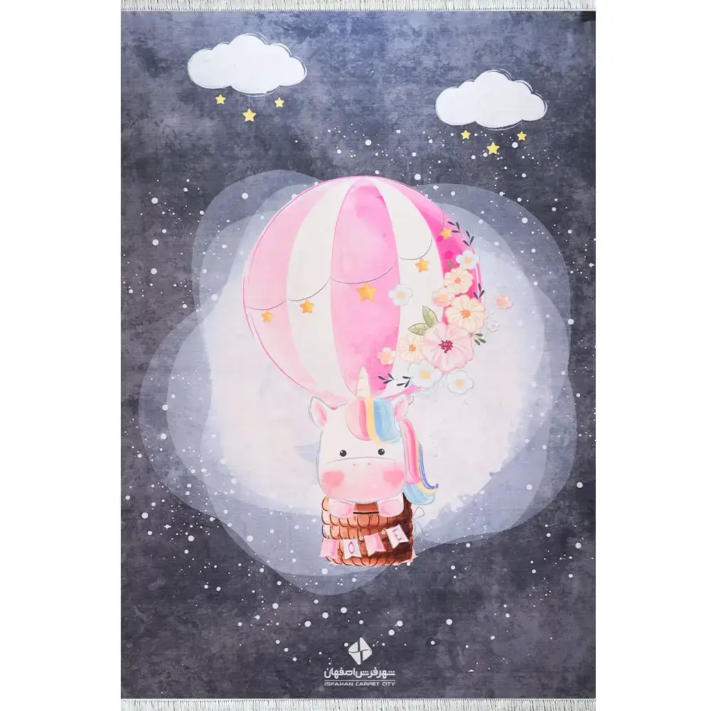 فرش ماشینی کودک کلکسیون محتشم اسب تک شاخ بالن سوار کد 2599009090 تمام رنگ 700 شانه